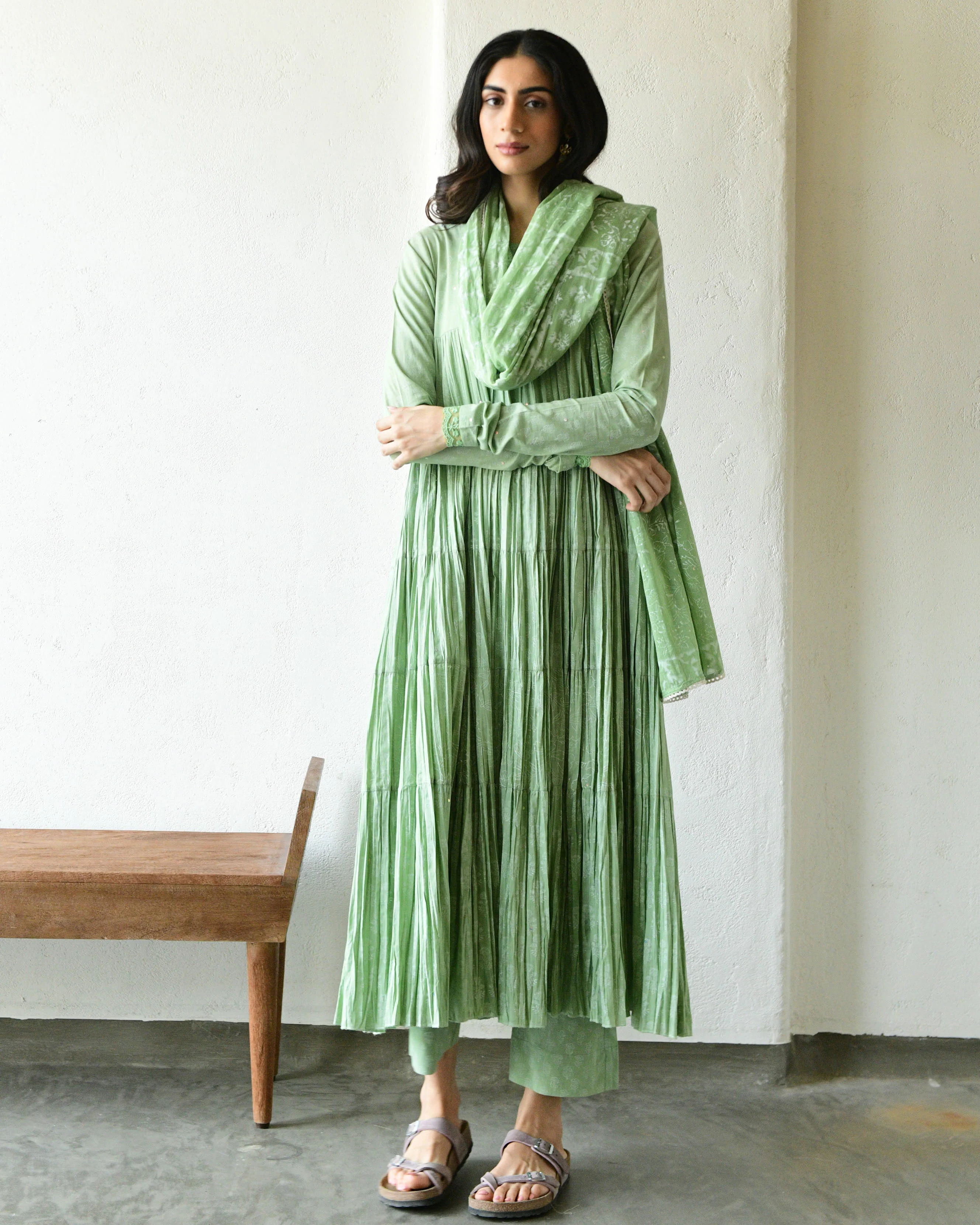 KHARI GREEN TIER ANARKALI SET OF 3