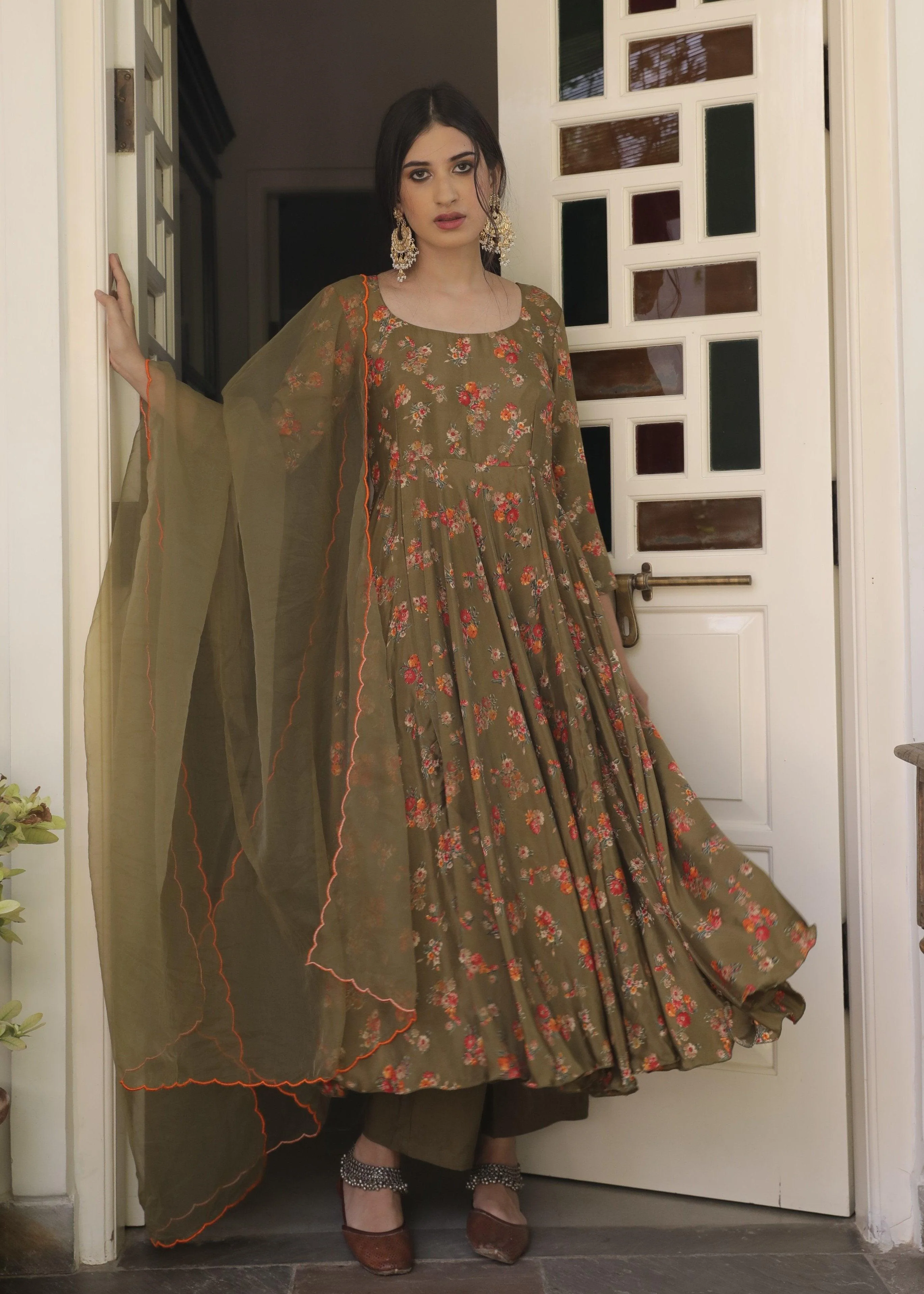 Nargis Olive Anarkali Set
